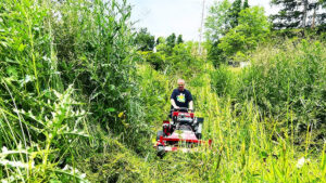 Humor: The image of tackling thick grass with scissors is both relatable and funny.