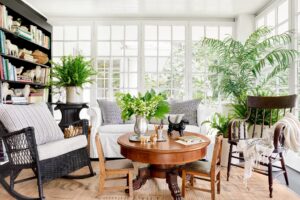 Maintaining a sunroom garden also means paying attention to humidity and airflow. Misting plants that enjoy moisture — like ferns or peace lilies — helps keep them lush, while fans or open windows improve circulation and prevent pests or mold in brighter spots. With consistent care, your plants can elevate your sunroom into a peaceful sanctuary.