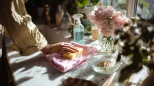Start small. Set aside 10–15 minutes every morning or evening to go through high‑traffic areas like the kitchen, living room, and entryway. During this time, you might wipe down counters, straighten cushions, do a quick sweep, or clear out items that don’t belong in those rooms. These little resets stop clutter from building up and make your home feel fresher every day. Over time, these short bursts of effort add up to big results and take the pressure off your larger cleaning sessions.